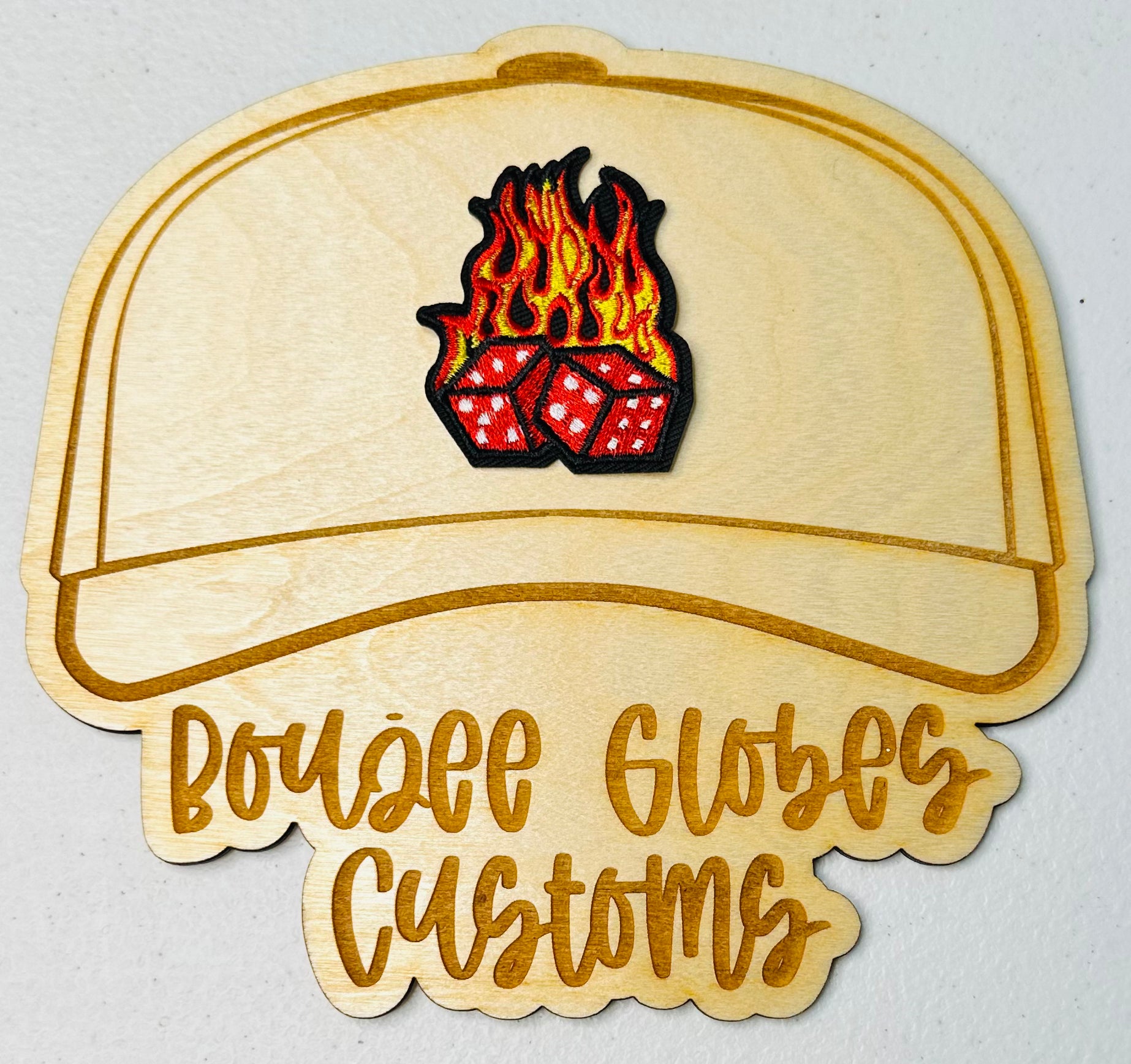 Embroidered Dice With Flames Iron On Hat Patch