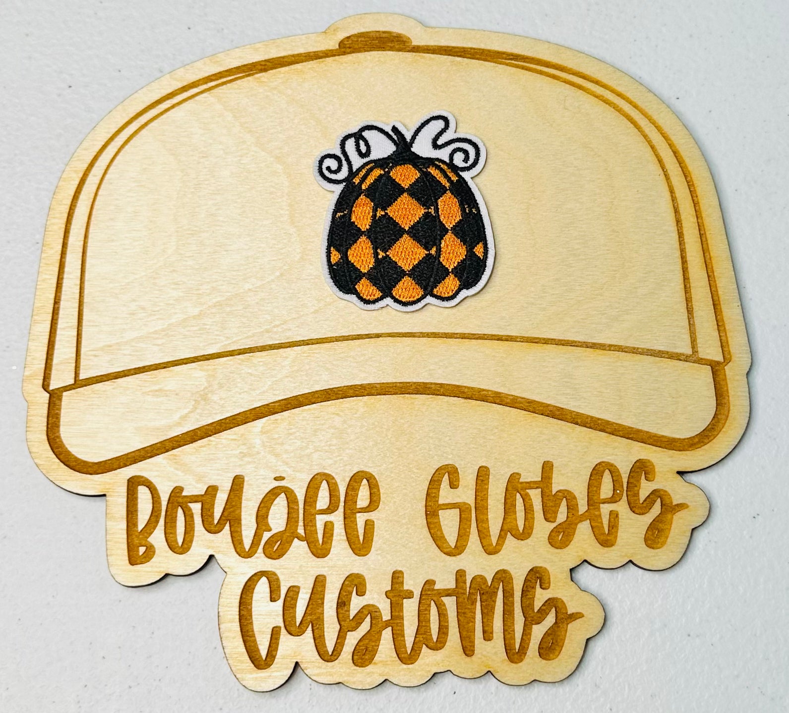 Embroidered Orange and Black Checkered Pumpkin Iron On Hat Patch