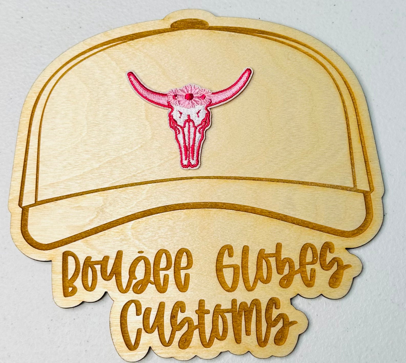 Embroidered Pink and White Bull Skull Iron On Hat Patch