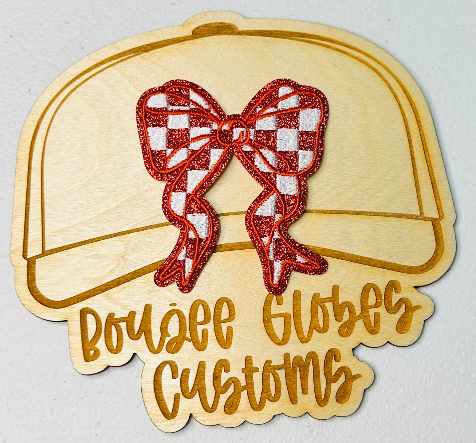Glitter Red and White Checkered Bow Iron On Hat Patch